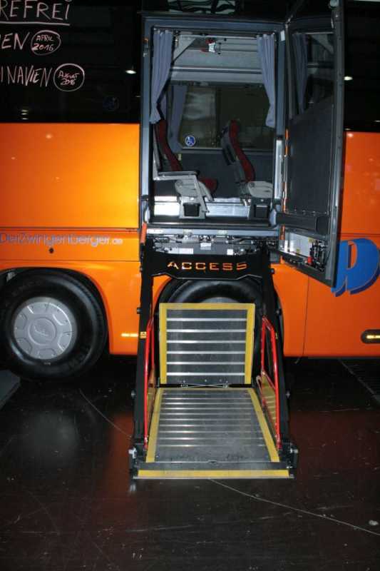 Unser erstes Interesse weckte ein barrierefreier Reisebus der Firma "Der Zwingenberger". Ausgestattet mit Hublift, Deckenlifter und behindertengerechten WC an Board ein wirklich tolles Fahrzeug.