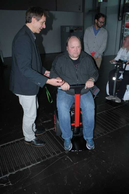 man kann mit einem solchen Segway im Prinzip nicht umfallen. Die Position und Lage wird 100 Mal in der Sekunde gemessen und automatisch korrigiert.