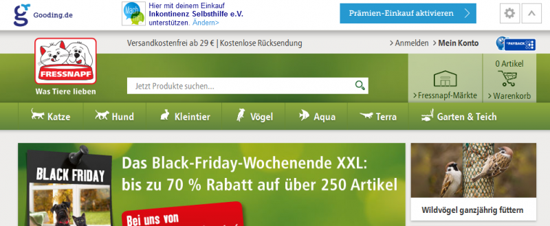 Sobald du jetzt einen Gooding Partnershop besuchst, erscheint die Toolbar oben auf der Seite. Klicke einfach auf "Prämien-Einkauf aktivieren". Ein gründer Haken zeigt dir an, dass der Prämien-Einkauf erfolgreich aktiviert wurde. Die Toolbar erscheint nur in den Partner-Shops!