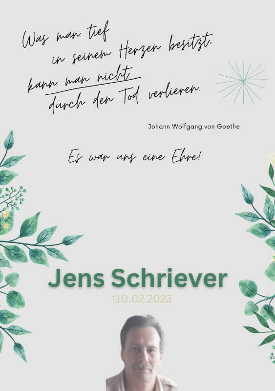 Wir trauern um unser Vorstandsmitglied Jens Schriever