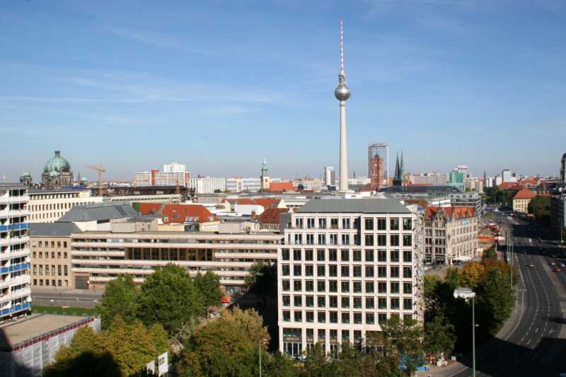 ...hübscher Blick über Berlin! Ist ja wirklich sehr, sehr mittig. Leipziger Straße, denke ich mal.