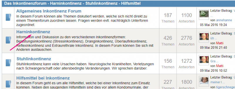 Du klickst auf die Überschrift des Forenbereichs Harninkontinenz