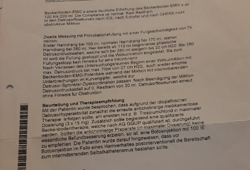Mein Urodynamik Bericht, den habe ich heute erhalten, liest sich übrigens fast identisch, nicht nur was die Zahlen angeht.