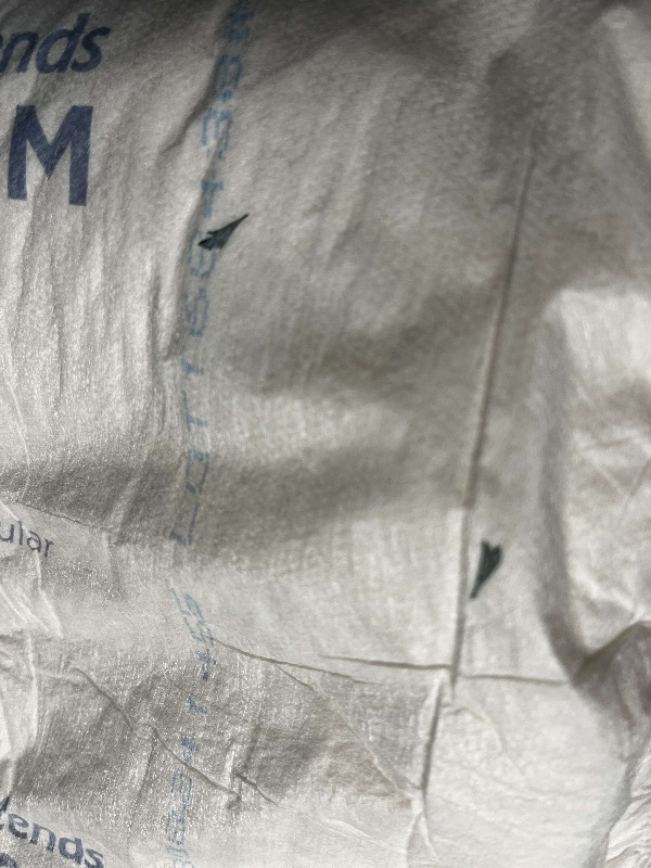 Leider habe ich damals meine Bewertung von Attends nicht gespeichert, und auch hier habe ich im Moment keine Energie. Allerdings bin ich tatsächlich enttäuscht von einer Marke wie Attends, gestern war eine Windel mit "Fremdkörpern" in der Packung, siehe Foto (der "Dreck" kommt nicht von außen, ist direkt im Vlies mit eingearbeitet).