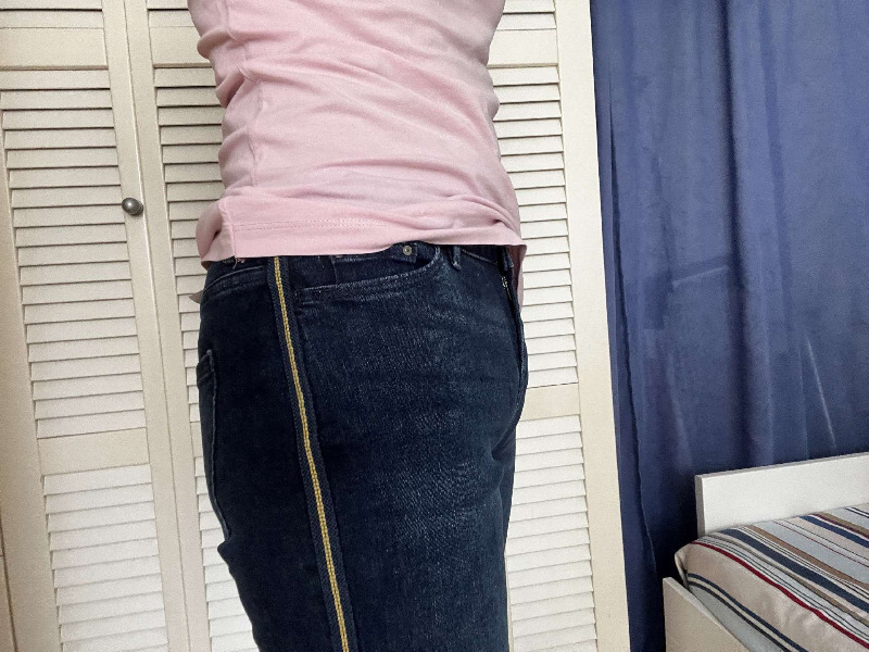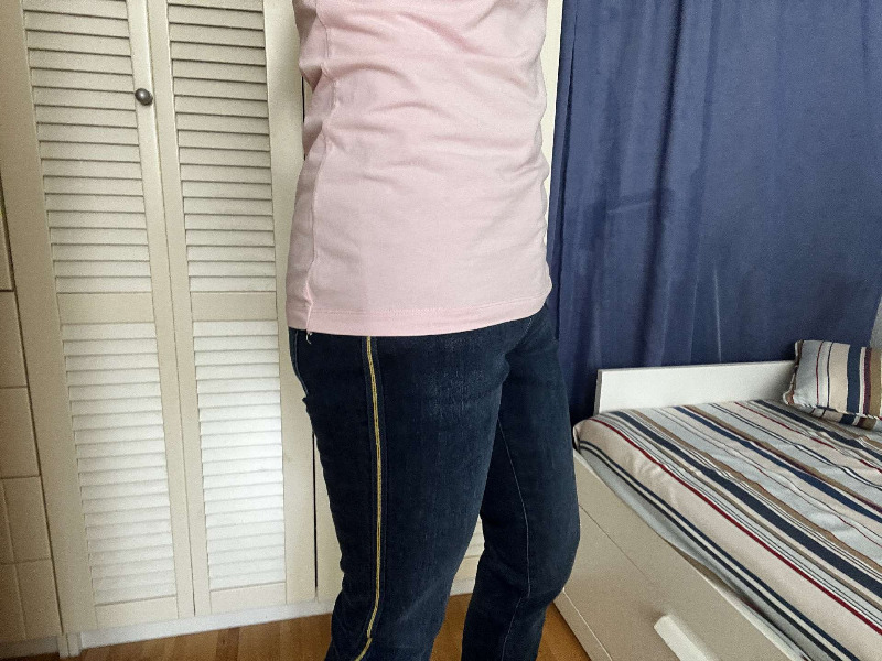 Da die engen Hosen ohne Hilfsmittel gerade so passen, fällt es mit Größe M drunter schon auf. Das geht nur, wenn das Shirt lang genug ist. Ich habe mal Bilder gemacht, da habe ich die Attends adjustable M drunter, die ist noch ganz frisch, also nach längerem tragen wird es noch dicker. Das enge ist wohl aber auch zwecks auslaufen eher schlecht, deshalb muss ich mir auf jedenfall neue Hosen besorgen.