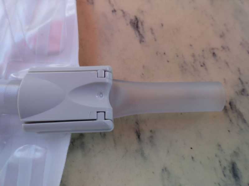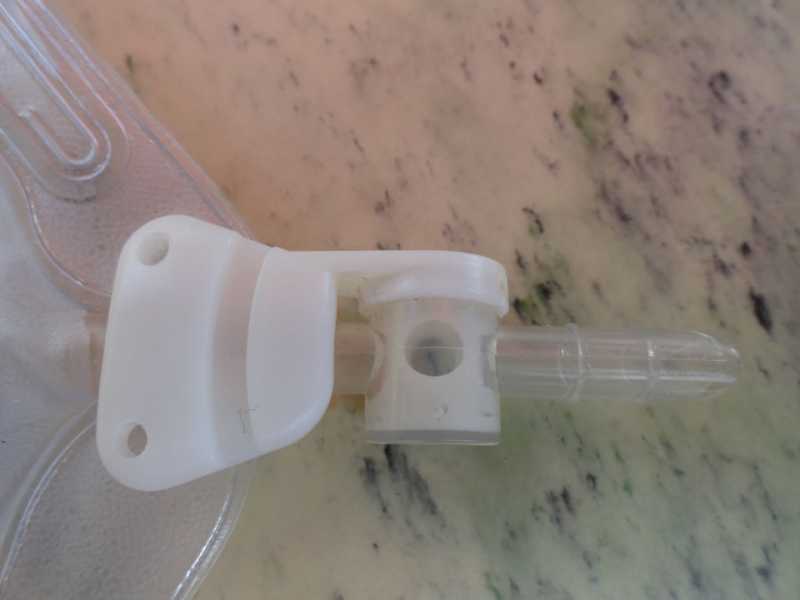 Dieser größere Schwenkhahn, der fest verbunden ist, hat den Vorteil, dass er mit einem Gummiring zusätzlich gesichert werden kann. Bedeutet aber auch zusätzlichen Aufwand beim Öffnen und Schließen. Der Gummiring wird in die angebrachte Nut eingelegt.
