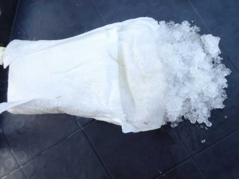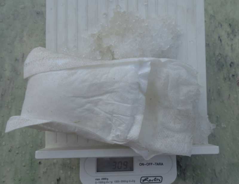 Die Füllung mit destilliertem Wasser wurde beim Erreichen des Gesamtgewicht von309 Gramm abgebrochen. Bei einer größeren Hülle, wäre die Füllmenge sicher noch größer geworden.