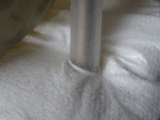 Anschließen wird mit einem Dorn (z.B. beginnend mit dicken glatten Stift, und weiter mit Bier- oder Weinflasche, etc.) auf die erforderliche Größe ausgedehnt.