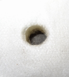 Mit einem ca. 10 mm Stanzeisen wird ein Loch an der markierten Stelle gestanzt.