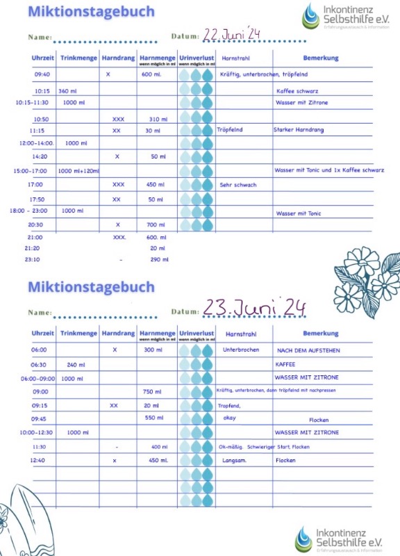 Tia, ich treibe selber viel Sport, war früher Leistungssportler und kenne es auch, dass man sich an grosse Trinkmengen gewöhnen kann. Als ich das erste Mal ein Blasentagebuch führte, erschrak ich auch ein wenig über meinen grossen Flüssigkeitszufuhr. Es macht sicher Sinn, dass Du die Trinkmenge nun während Deiner Rekonvaleszenz reduzierst und dann wieder mehr trinkst, wenn Du wieder aktiver bist. Ich muss mich aber auch immer wieder daran erinnern. Ich wünsche Dir, dass Du bald Klarheit zu Deinem Entleerungsproblem hast und sich die Situation wieder normalisiert.