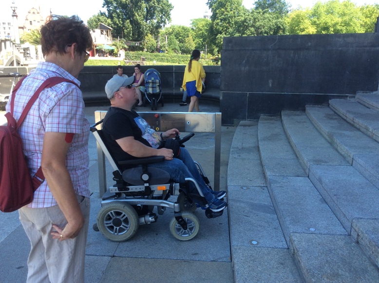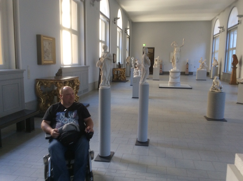 Des Öfteren gab es auch Hindernisse, die es zu überwinden galt. Diesen Lift hätten wir ja noch geschafft, aber den Lift dann im Bodemuseum durften wir nicht verwenden, weil er für den schweren..... Rollstuhl nicht geeignet war. Obwohl, der Rollstuhl alleine wäre ja nicht das Problem gewesen.