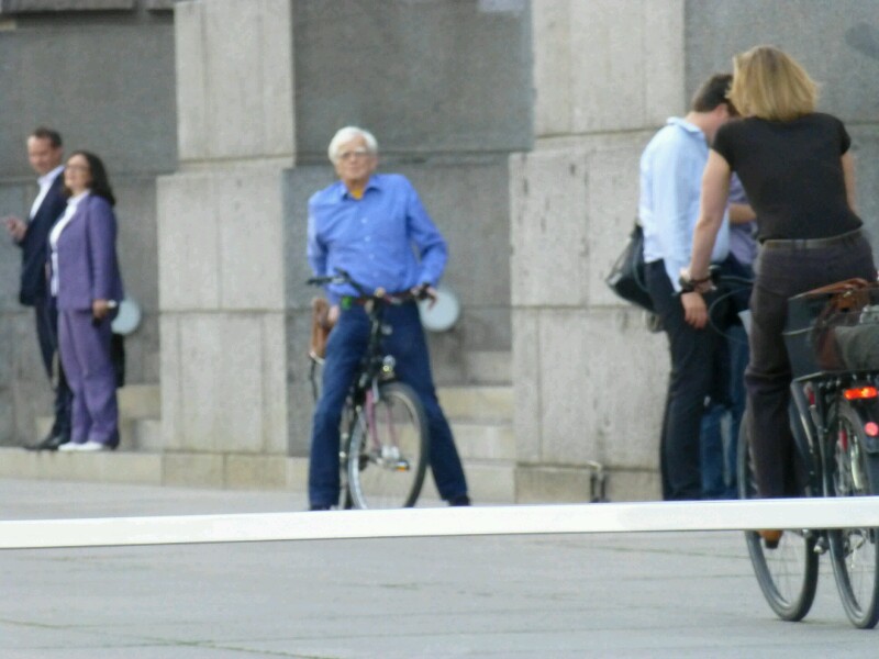 Promi sehen auch gestern erfüllt. Herr Ströbele auf dem Rad und im Hintergrund Frau Nahles (Bundesministerin für Arbeit und Soziales).