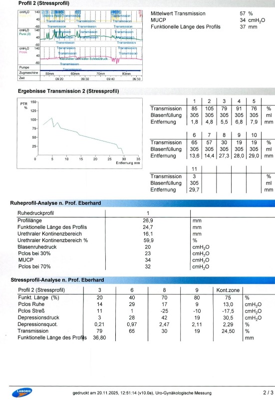 An der Profilmessung hat sich verglichen mit der letzten Untersuchung kaum etwas geändert - es wurde halt eine Belastungsinkontinenz festgestellt.