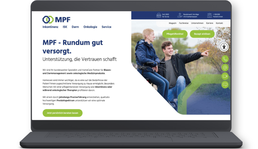 Der Relaunch hatte ein klares Ziel: bessere Orientierung und mehr gebündelte Inhalte, insbesondere rund um unseren Magazinbereich und die Erfahrungsberichte. Herzstück ist das MPF Magazin: Dort bündeln wir Wissen zu Inkontinenz, Darmgesundheit, Onkologie und Homecare – verständlich, alltagsnah und medizinisch fundiert. Außerdem finden sich dort neben Grundlagenartikeln auch persönliche Erfahrungen von Betroffenen.